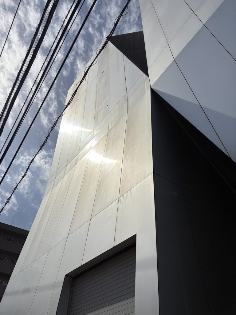 いくつかの建物が寄り添ったような外観であるが、これも外壁のアルミパネルの表現により、無垢感(ピュア)なものとして感じられる。